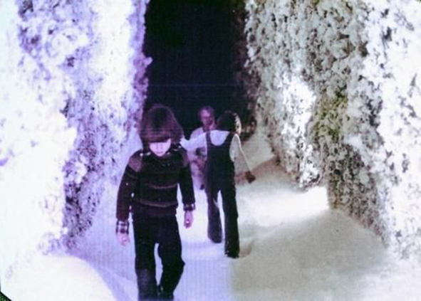 I’ve noticed throughout my time in the archive that Kubrick, even in research photographs, is drawn to a wide scene-revealing frame that contains a dark occluded centre. This, of course, is most apparent in 2001: A Space Odyssey, when the monolith cuts a perversity of blackness across cinema’s wide-open gaze. But this isn’t the only place this framing is revealed. Looking through production stills across Kubrick’s career I’m struck by the Rothko-like concertina into a dark endpoint that his framing often offers. It’s a very radical strategy. It is the perfection of cinema and the end of cinema held in one frame. It is an image that is made of classical perspective, is about and made of the past, but also implies a future point, a vanishing point, the something that is nothing, and that’s there before us all in plain sight, an existential warning as blank and obvious as Magritte’s boulder that fills a domestic room.